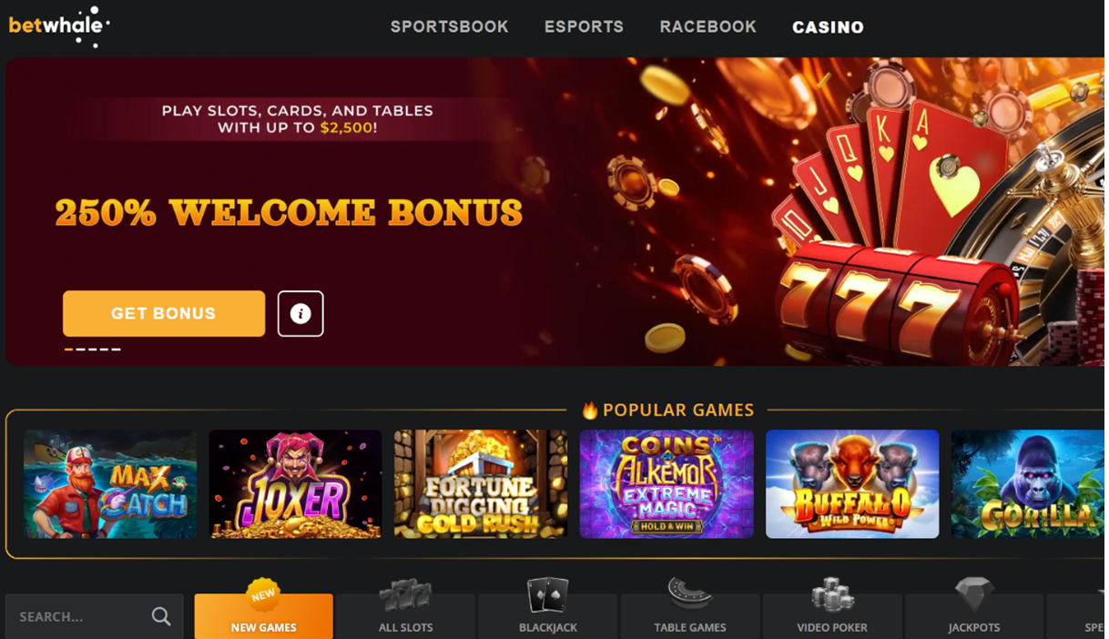 Betwhale’s lobby houses over 1,000 titles from top-tier, US-friendly software providers